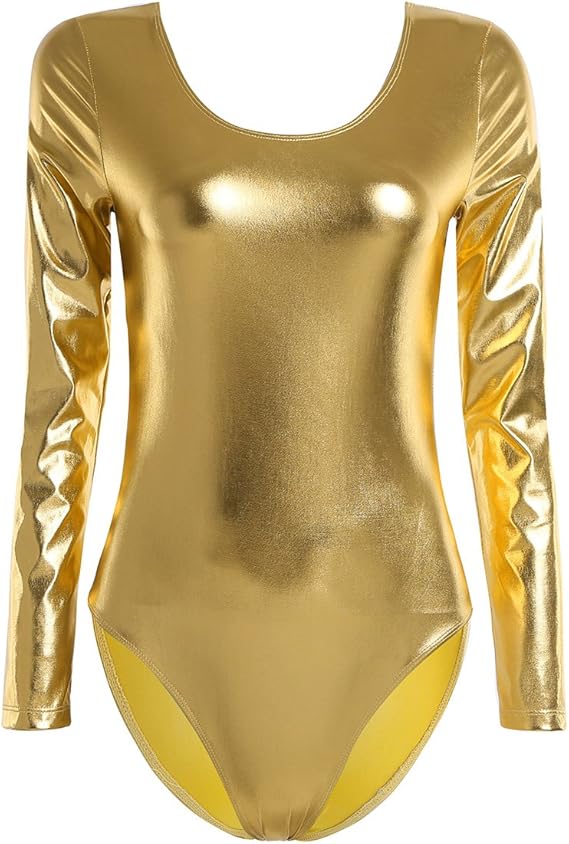 Women's Long Sleeve Shiny Metallic Gymnastics Dance Leotard