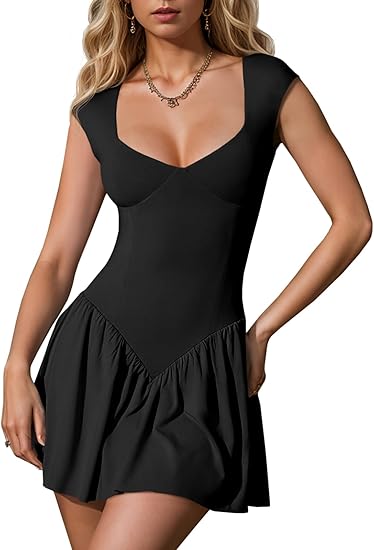Womens Summer A Line Dress Cap Sleeve Slim Fit Sweetheart Swing Ballet Dance Skater Mini Dress