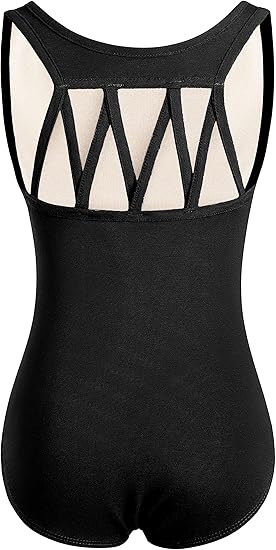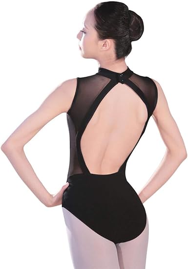 Black Girls Women Dance Leotards One Mesh Short Sleeve Ballet Clothes with Open Back