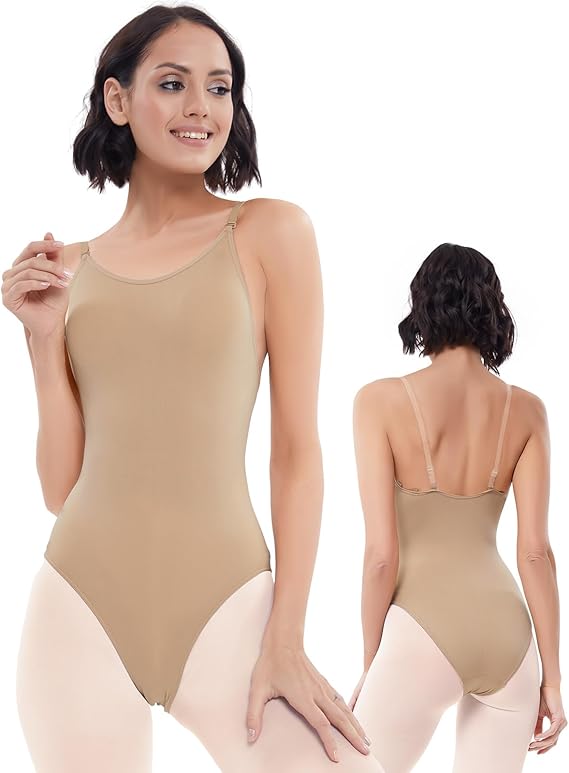 Women Nude Leotard Seamless Camisole Undergarment Leotards for Ballet Dance Gymnastics with Adjustable Clear Straps