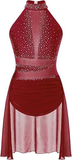 Women's Glittery Rhinestone Lyrical Dance Costume Ballet Leotard Modern Contemporary Dancewear