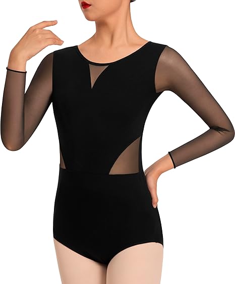 Long Sleeve Lace Leotards for Womens Ballet Dance Gymnastics Bodysuit