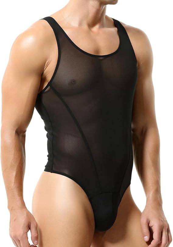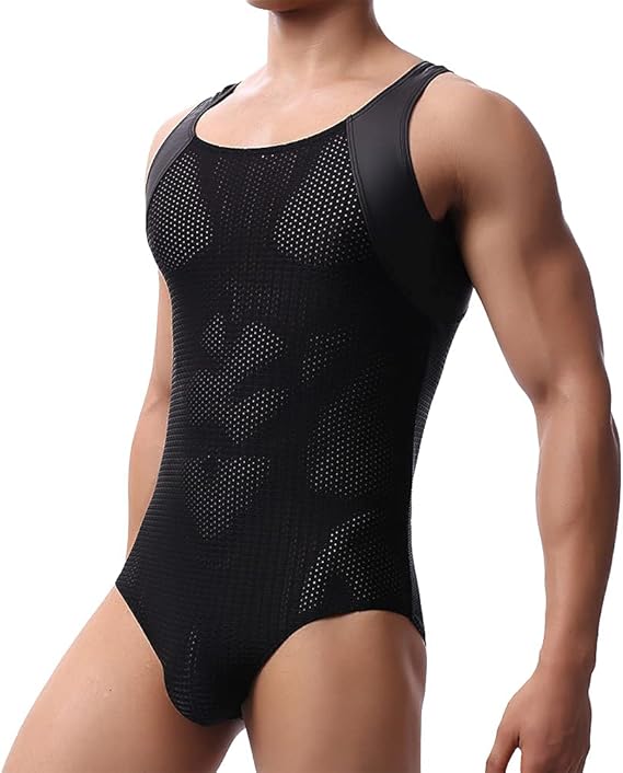 Men's Breathable Mesh Tank Top One Piece Wrestling Singlet Bodysuit Jumpsuit Leotard Briefs Underwear