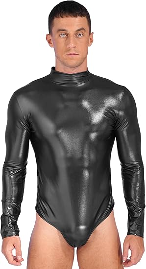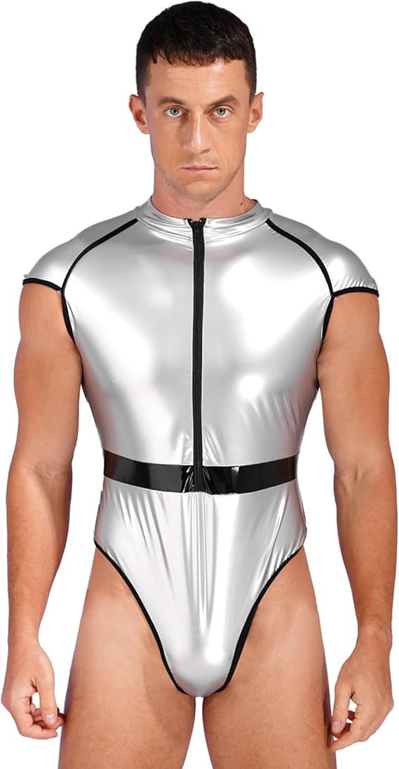 Mens Patent Leather High Cut Bodysuit Clubwear Catsuit Pole Dance Leotard Halloween Cosplay Costume