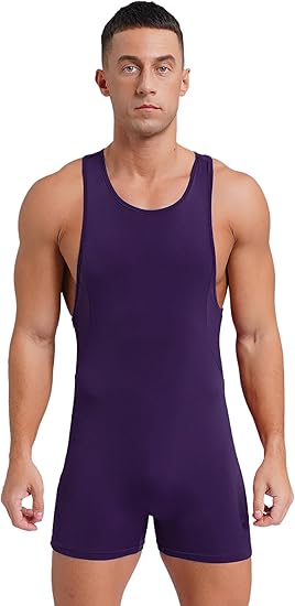 Mens Athletic Wrestling Bodysuit Leotard Mesh Back Tank Rompers Jumpsuit for Bodybuilding