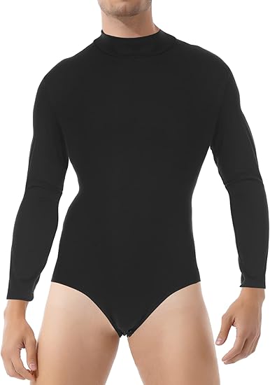 Mens One-Piece Mock Neck Long Sleeve Bodysuit Latin Dance Leotard Undershirt Ballroom Dance Costume