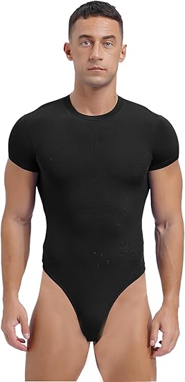 Men’s High Cut Bodysuits Press Button Crotch Leotard Bathing Suits Compression Nightwear