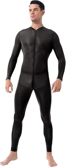 Men Adult Spandex Long Sleeve Unitard Bodysuit High Neck Zip One Piece Leotard Dance Costume