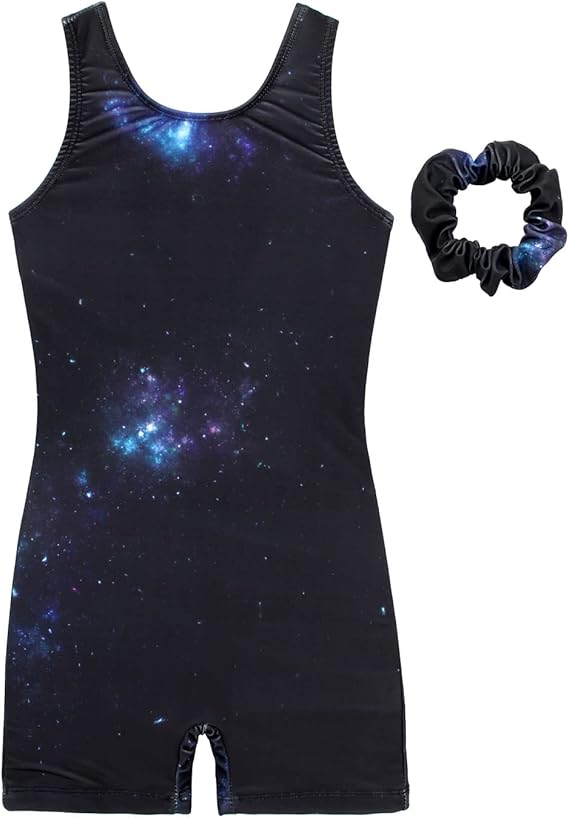 Leotards for Girls Gymnastics with Shorts Dance Biketards Tumbling Matching Hair Scrunchie 3~15 Years