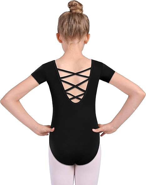 Girls Dance Ballet Leotards Short Sleeve Criss Cross Straps Back