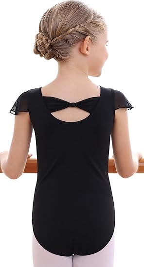 Girls Leotard for Ballet Dance Gymnastics Toddler Kids Outfits With Bow Back Ruffle Sleeve