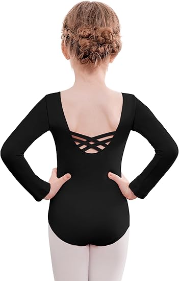Team Basic Leotards for Girls Long Sleeve Crisscross Ballet Dance Gymnastic Outfits for Kids