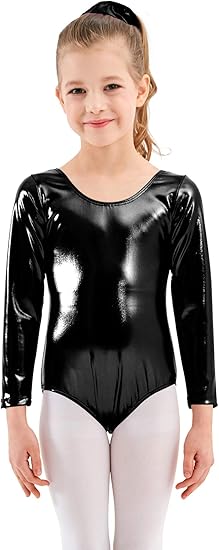 kids Shiny Metallic Patent Leather Gymnastics Dance Leotard Work Out Bodysuit Jumpsuit