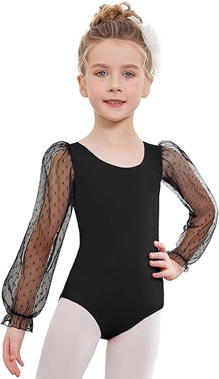Gymnastics Leotards for Girls Polka Dots Mesh Long Sleeve Ballet Dance Outfit Toddler Size 3-11 Years