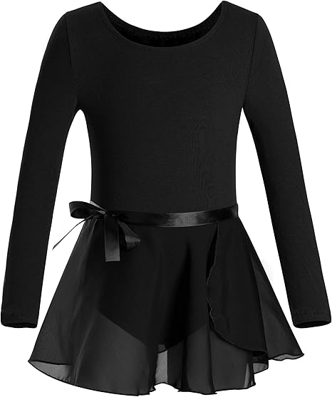 Girls Team Basic Long Sleeve Leotard with Skirt Kid Dance Ballet Tutu Dress