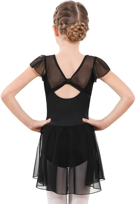 Girls Ballet Leotards with Skirts Toddler Hollow Back Dance Dresses with Ruffle Sleeve