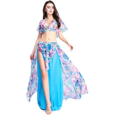 Belly Dance Costume Set for Women Chiffon Dancing Skirt and Tops